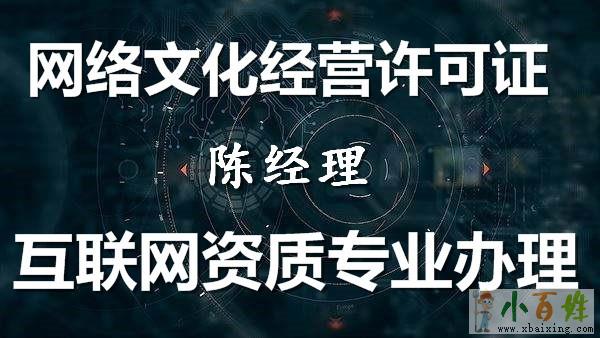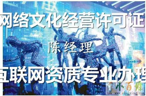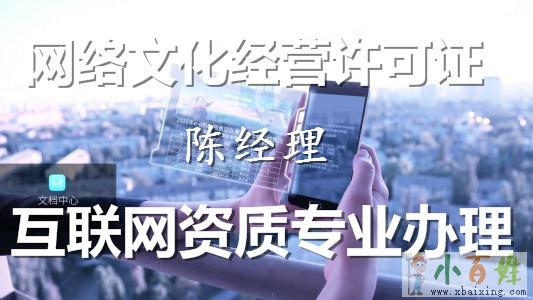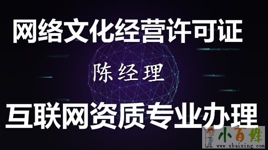 《网络文化经营许可证》是通过互联网载体(PC端/移动端)传播与文化相关业务所需要申请的资质。其受众群体的七大类:游戏、音乐娱乐、动漫画、展览比赛、美术品、演出剧节(目)、网表演来源www.xbaixing.com。