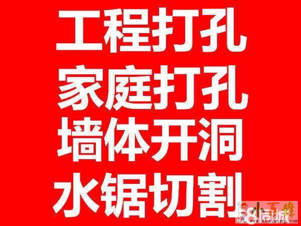 (一)钻孔部:工程打洞,专业从事大型混凝土开门、开窗、钻孔(打洞、打孔、开孔)、热水器打孔、空调打孔、暖气过墙孔、油烟机打孔、浴霸打孔、、墙地面等洞。外墙不损,一次成形。工程打孔墙体开门开窗拥有一支设备齐全技术力量雄厚高素质员工的队伍公司成立多年以来,工程打孔,开门洞,公司一直以来以客户需求为第一,想客户之所想,解客户之所急,以信誉求发展,质量求生存,一切以客户满意为标准全城低价承接:工程打孔、专业打孔、空调打孔、热水器孔、油烟机孔、水管打孔、墙壁开门和开窗、楼房加固、拆除房屋等一切打孔工程小百姓网。承接各种砖墙、混凝土墙、楼板打孔,开门、开窗。工程打孔、空调打孔、油烟机孔、水管打孔、墙壁开门和开窗、楼房加固、拆除房屋等工程。工程打孔、专业打孔,各种楼板、砖墙、混凝土墙开洞、开孔小百姓网www.xbaixing.com。专业开门开洞。开通风道等钻孔工程。有大型工程台钻机,真诚为你服务,欢迎洽谈来源www.xbaixing.com。
