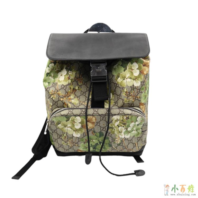 Gucci古驰 PVC配牛皮绿色印花双肩包 406398