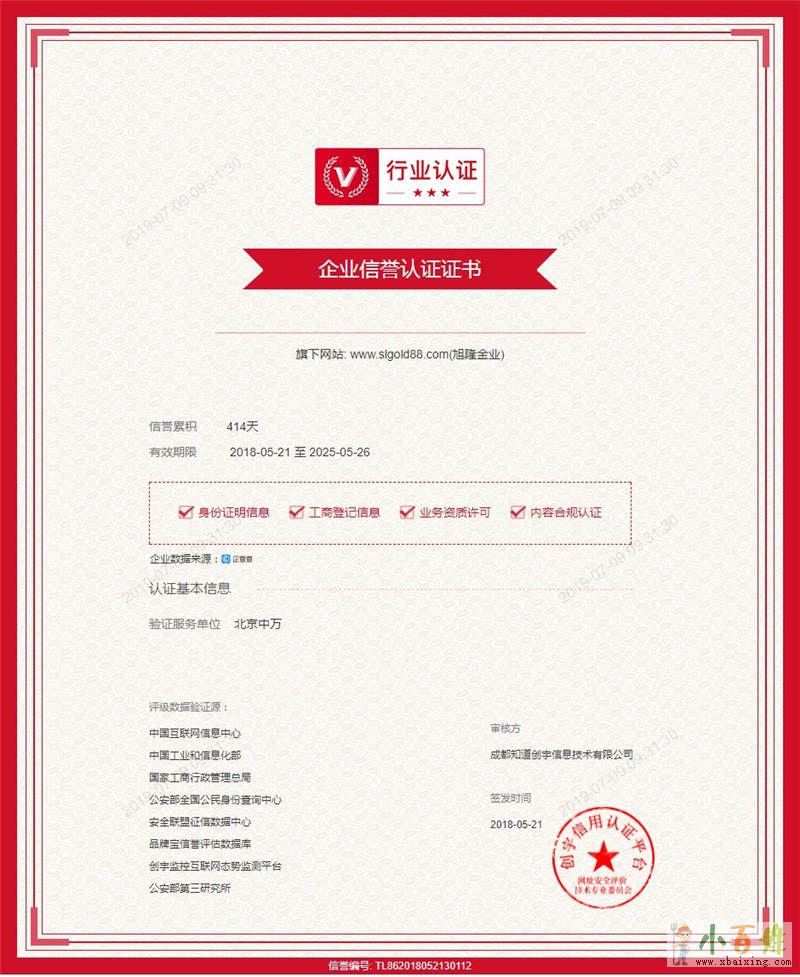 近日,由旭隆金业(香港)有限公司运营的旭隆金业成功通过安全联盟严格验证的“行业验证”,正式成为“安全联盟信誉档案库”成员小 百 姓 网。至此,给旭隆金业忠实的用户群又多加了把“金银锁”,广大忠实投资者又多了一个坚定选择度旭隆金业的理由——更安全更可靠。