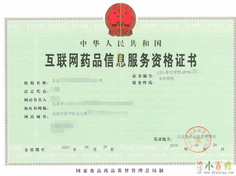 2、非经营性的互联网药品信息服务资格证小+百+姓+网。