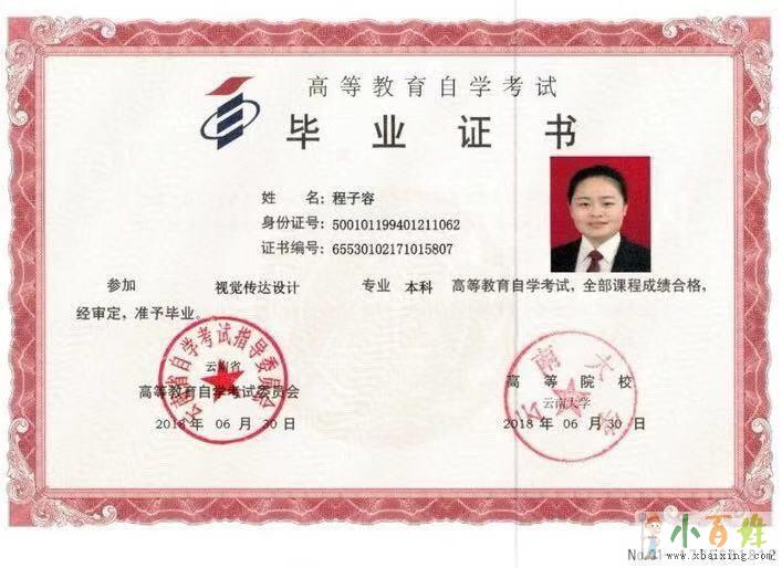 成绩全部合格者,由云南大学和云南自考委联合颁发教育部电子注册的本科毕业钲书。