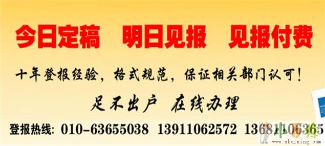 北京晚报刊登各类声明公告,权威有效,各发证机关部门均承认其效力!x_b_a_i_x_i_n_g_c_o_m
