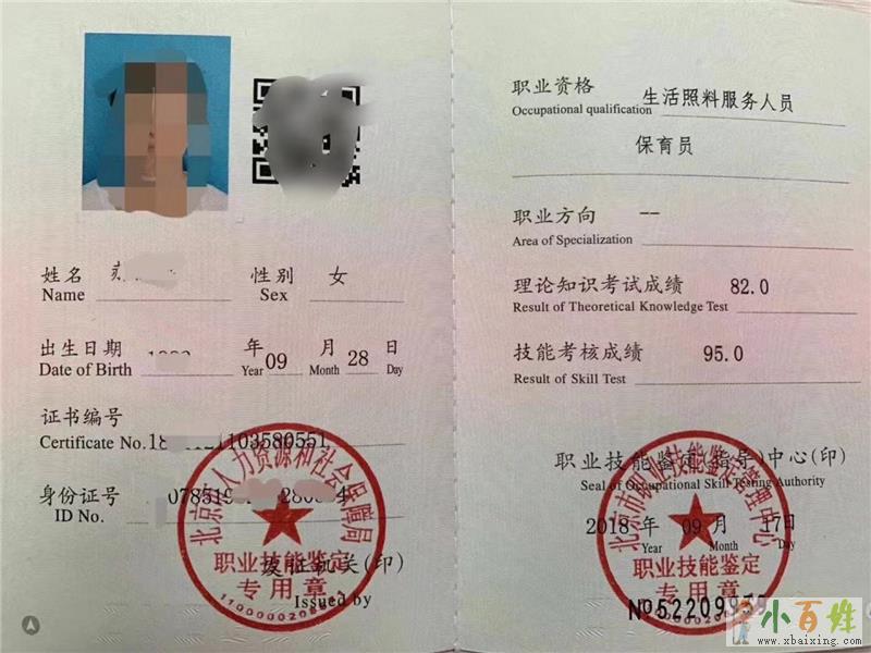 经考试合格,由国家人力资源和社保障部颁发相应等级的保育员国家职业资格证书、是国家唯一的保育员职业资格证书,全国通用,证书网上注册备案.终身免检,用于幼儿园保育员持证上岗,升职加薪,自身职业能力提升,幼儿园办园资质原文www.xbaixing.com。