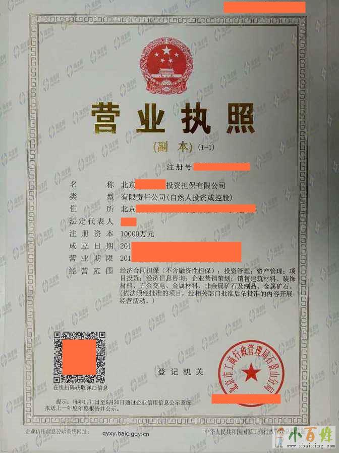 2020投资担保营业执照价钱
