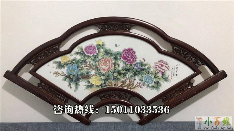 张松茂锦绣芳华瓷艺双绝 花开富贵扇形瓷板画x_b_a_i_x_i_n_g_c_o_m