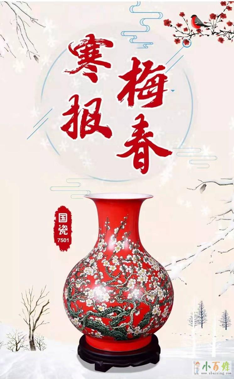 2019年,祖国70华诞,张松茂徐亚凤成功创作了以白梅为题材的《寒梅报春》赏瓶,以红为底色,梅树枝干纵横交错。盘虬怪异,劲如弯铁,刚健有力;白梅组织自然,形态各异,英姿勃发,黄色点缀的花蕊,恰到好处,颇具精神,寓意梅花不畏严寒,清香沁人,迎待春天到来的高贵品质。同时“水点技法“也是珠山八友刘雨岑首创的粉彩绝技,梅花赋色艳丽厚实,盈闹枝头,梅枝细劲挺健,勃勃向上,展现出卓然绽放的神韵。徐亚凤大师作为“水点技法”的第一代传人,将毛瓷中至关重要的“水点技法”发挥得淋漓精致,出神入化,再现了毛瓷真品的芳容,兼具极高的艺术价值与实用价值,乃毛瓷之珍品。x~b~a~i~x~i~n~g~c~o~m来源www.xbaixing.com