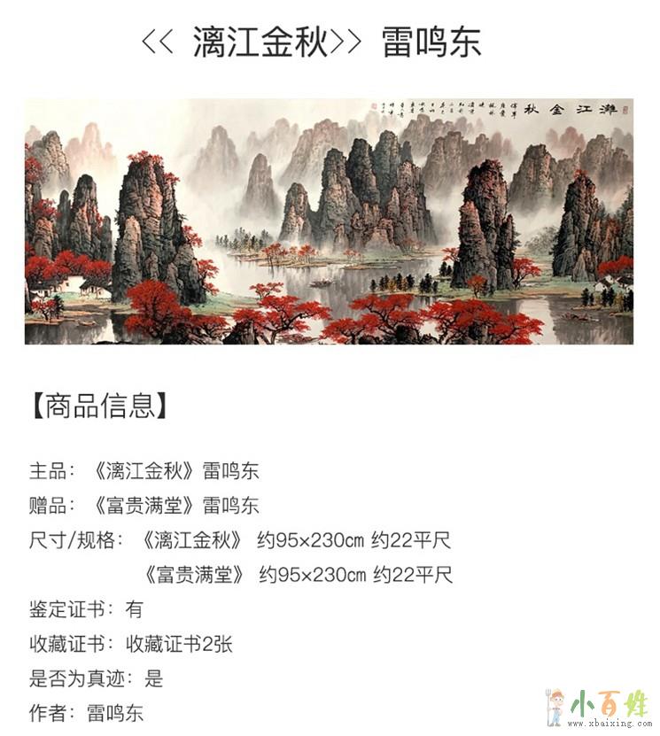 【藏品名称】:国画大师雷鸣东《漓江金秋》小 百 姓 网